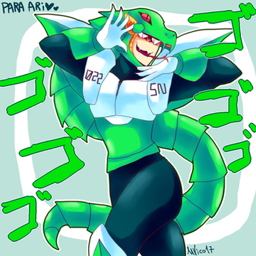 Their OC Dagahraman (with a tiny doll of Blacephalonwoman, who's also their OC)
