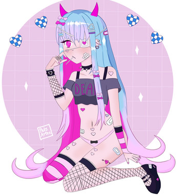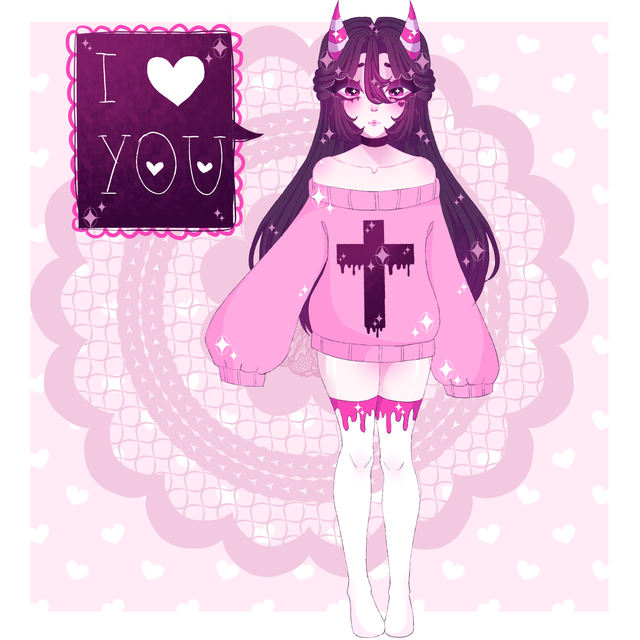 #bat #black #cross #demon #egirl #hearts #horns #pink #purple #uwu #pastelgoth