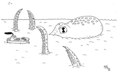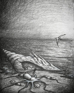 #boat #abstract #blackandwhite #inkdrawing #ocean #octopus #starfish