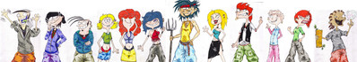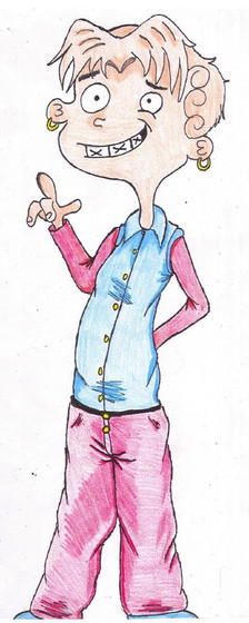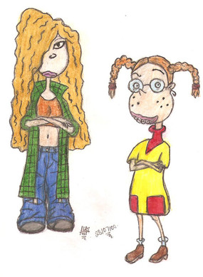 A rough design of Sarah at around 14 years old. Still kickin' ass...still moody.Tomboyish haircut and clothes.