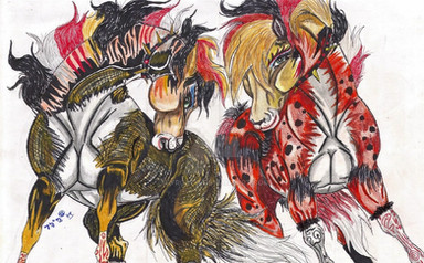 These are pictures of the characters from the Video production of the musical play "CATS" in the form of horses.
