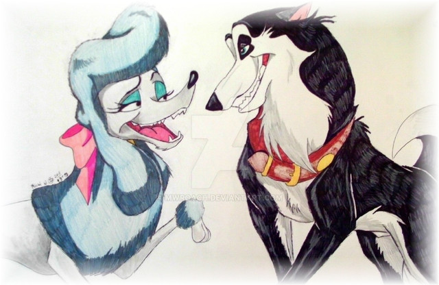 This had to be the most difficult style for me to conquer. At first, I wasn't going to do it. I like drawings that look good, and the style for this particular cartoon is just downright horrible. What changed my mind was actually watching the cartoon, "It's So Nice to Have a Wolf Around the House". I was pleasantly surprised because, for once, the wolf turns out to be the good guy in the end. What a breath of fresh air that was. But now I had to draw in that horrible style. I'm right-handed, so when I attempted to draw the style, I kept trying to make it too perfect. So I decided to try something new: I drew this with my left hand. Couldn't be a perfectionist with my left hand even if I wanted to. This horribly-drawn style actually turned out as horrible as it's originally drawn, and for that I am proud. I chose Phantom to represent this character because it's really a sweet character and so is my Phanny.