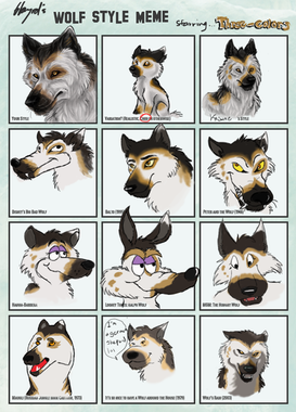 I had a lot of fun with the Equine Style meme. So I thought I'd take a step out of my comfort zone and try out the Wolf Style one. Also, fun but far more challenging than the Equine meme (I've been drawing horses for way longer than I have been drawing canines). It was difficult but I don't think I did too horribly. Plenty of room for improvement though.This challenge features my 6 wolfdogs and my doggy-dog.