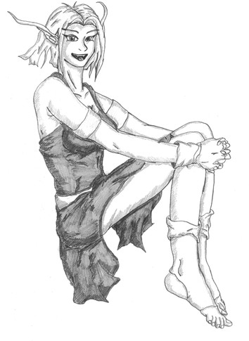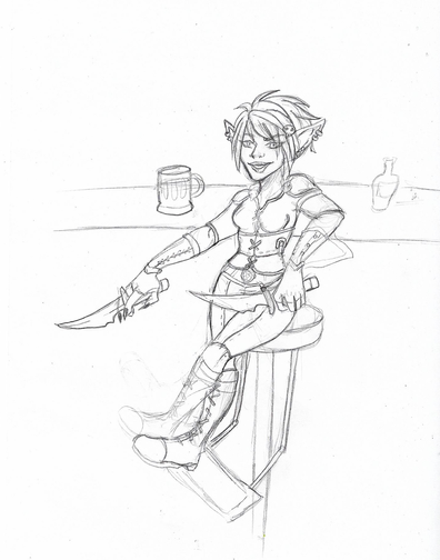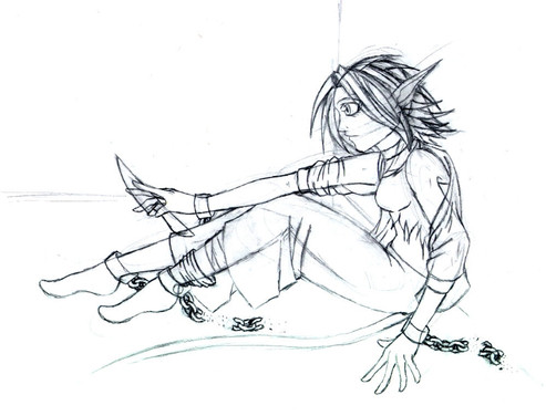 I like the texture you got from the shading in this one - the sepia tone really helps make it stand out too I think. Her hands are so well done (you always draw them so well though of course!), and I love her overall attitude and slouchy give-a-fuck posture haha!