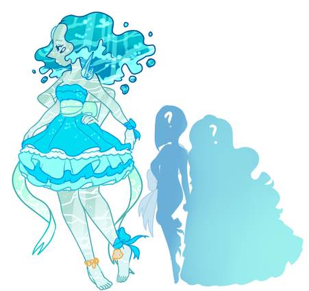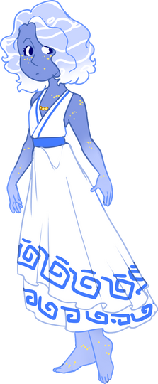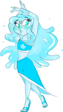 Before she was corrupted her gem was confined to the spot between her shoulder blades and her hair was the only water thing about her. She was a respected gem who was told to be beautiful, elegant, and happy. always singing a song of joy