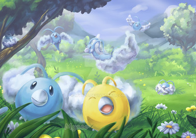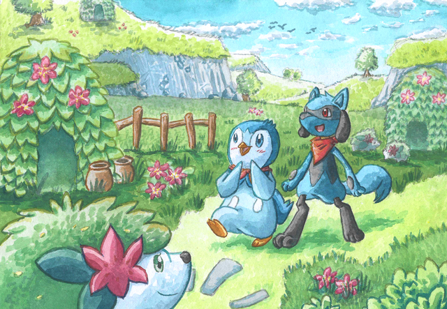 #birthdaygift #fanart #flowers #gift #pokemon #pokemonart #pokemonfanart #spring #swablu #traditionalart #watercolors #pachirisu #wablu #dedenne #felori #sprigatito #sprigatitopokemon