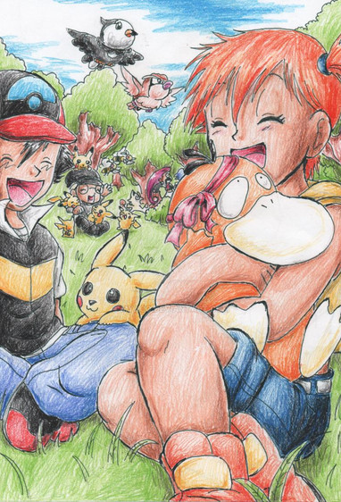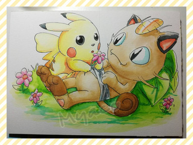 Here comes the birthday picture for ShuraChan ! Bre had his birthday yesterday, also on a Saturday.This time it's not a Beelzemon, since we've been playing a lot of Pokémon together lately, I thought I'd draw the Pokémon she particularly likes. Felori took her as a starter in purple and she likes Pachirisu from radiant diamond and Dedenne and Wablu from Pokémon Go. Although she has the shiny version and I only have the normal one. Which doesn't make it any less cute.