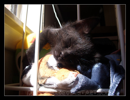 a very cute shot indeed I think the colours in this are really nice. I especially like the lighting because it helps the eyes to focus on the cutest part - the face. A good overall shot