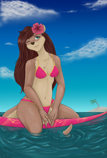 Mermay has been all the rage among artists during this month, so I decided to join the bandwagon, but not without cheating a little. Nat is my mermaid for the occasion, and as someone designed as half human, half aquatic creature, it's not hard for her to fit the bill. To reinforce the idea, I included the surfboard to convey the image of a "fish tail" through composition.Edit: Tweaked the shading and highlighting on the swimsuit.