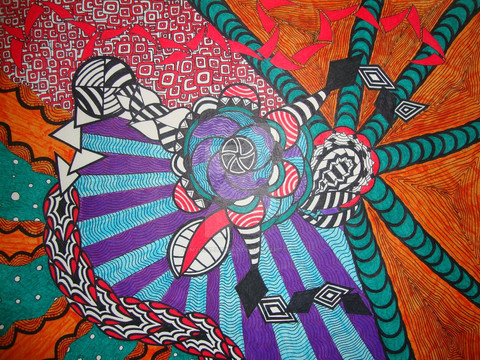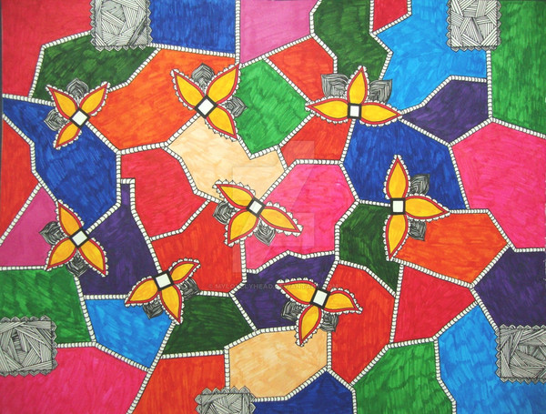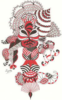 very cool indeed! i've been playing around with a shape like the "tail" of this--the yellow heartish looking thing? the ropey things i used in my gift for hesterkin came of that experiment! this is like one of those pattern recognition things i did. if you had the line art....or did you draw the whole thing and post it? i always scan/shoot the line art first, just in case i screw it up coloring it or whatever. i was thinking it would be really fun to use these shapes as the basis for another of my pattern recognition series...maybe you would be interested in joining in? i've been thinking it would be cool to have more people do it. wants to get in on it. i thought we could draw line art for each other and do these types of series. hey! just had a thought, i could restructure the collab group for this--it's pretty dead right now. i couldn't figure out what to do next. i bet jodi and preeti and frank might want do this. what do you think?