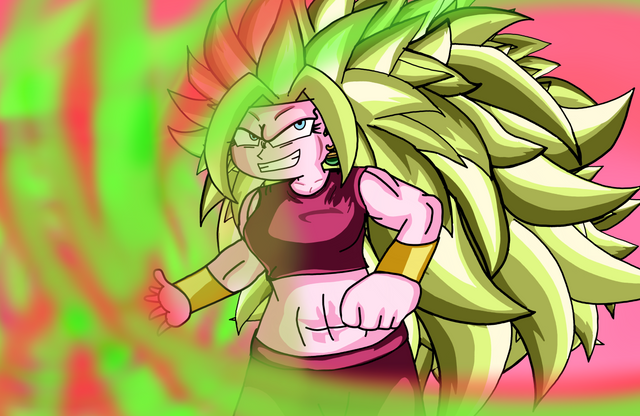 Looking the scene from a distance, Kale didn't seemed focused on the struggle. Looking aroud, she seemed angry and when Captain Masato made flying one of these guys on her, she immediatly went berserker, changing into her Legendary form. Crushing the opponents of the captain, Ginyu was the only one who could dodge the heavy dash but Kale followed his escape and grab his face to crush him to the ground. Using some Ki balls, she buried the captain deeply until he jumped out of the hole without any injuries.