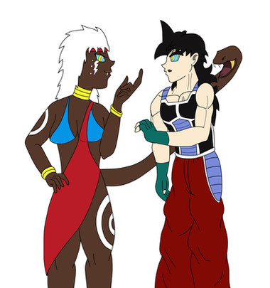 A certain young black-haired, white outfit, female Sayian then catches Exèlixi-Kay's attention as she chases Con in Bulla's body....