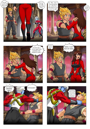 "There! Second good deed done. Now....to brainwash Mia as my servant, put her into Pan, and boost up Pan's body.... I think Super Sayian 2 will do for a start.... Maybe a growth spurt too."