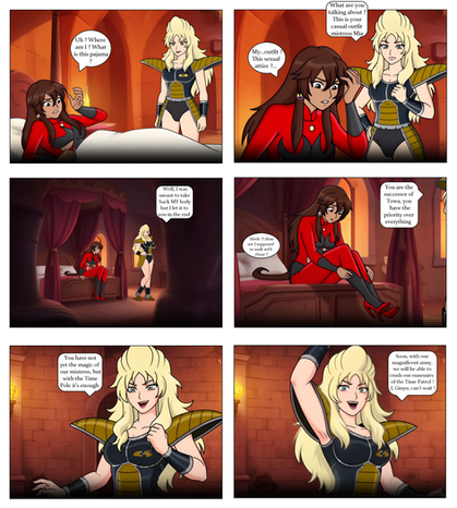 All over the places many swaps are still ongoing. Mitch, the former leader of the Time Patrol being trapped into a mere blonde human. Danny the hero of his world mind-controlled by an evil entity. Con the bodyswap master becoming Bulla the daughter of Vegeta. Shadow in Myria body being parasited and changed into a penguin....