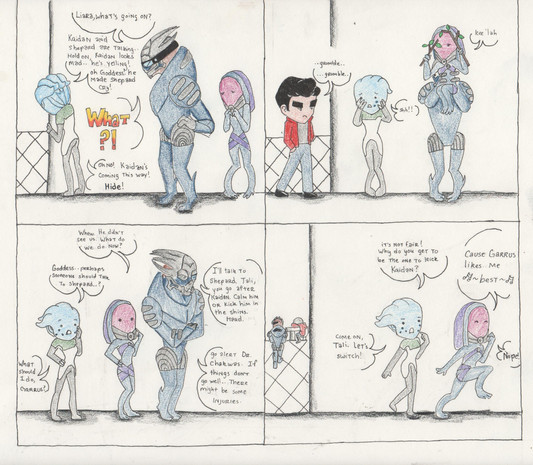 Lol OMG that is so adorable and cute hehe and she should be with Shepard but this is just my opinion, it doesn't matter to me other possibilites for in my mind everyone is entilted to their opinion. Regardless if they are right or wrong