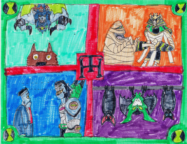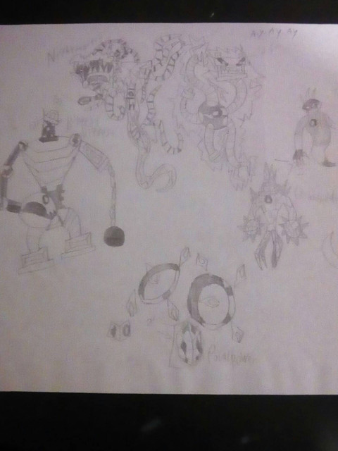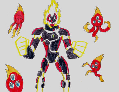 A sort of demonic Omnitrix made for Vilgax.The demon of Envy (who I'll do later) gave this to Vilgax as a tool to aid the other baddies in finally destroying the heroes. Demons of envy naturally have the ability to mimic other creature's powers, traits, etc. So Vilgax was given this little parasite. It can bite someone to gain their DNA so VIlgax can transform into them. But, he also gains any powers unique to that person since the Sinitrix also sucks out part of their soul. Of course he had it take a nibble at Ben's Omnitrix so he could gain the transformations of the Omnitrix, but now they're powered up with demonic energy. I may do demonic versions of the Omnitrix aliens.