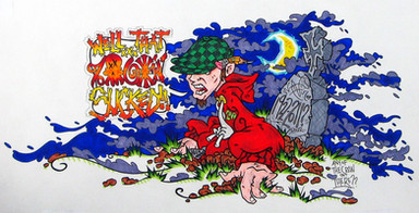 My dA page says I have been here almost 3 years, the truth be told it's been like 1 and a half. I set it up in October of 2007, and didn't touch it for a long time. I had been struggling with....well...with graffiti. Everybody keep saying "you should be a tattoo artist" or "you need to write a children's book" or my personal favorite, "you need to draw greeting cards." I kept, well, trying to kill my love for graffiti. I mean don't I want to be a "successful" artist?