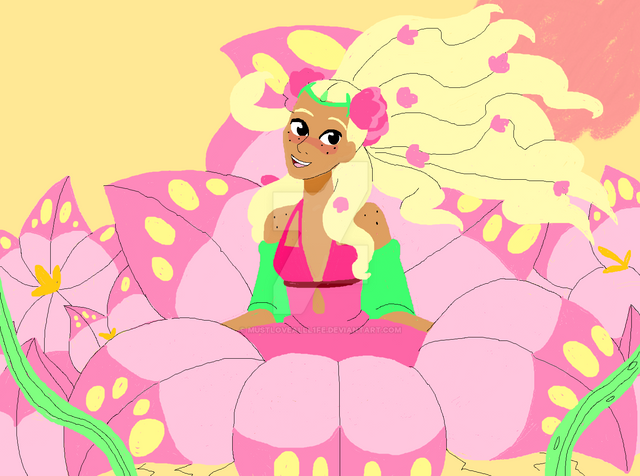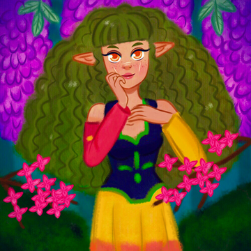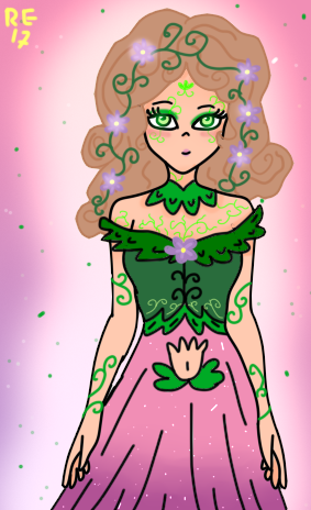 Her “hair” is just natural flowers. She can change them of any flowers and colors she wants. Her eyes would change on the color of the flowers 🌸