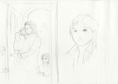This was apart of my final creative project that I presented today. It took a few months with everything else, and was a challenge because i'd never used those type of drawing pencils before. Much better than typical #2 pencils.I wanted to depict silence within families using the films we studied in class, which included The Silence (1963), Fun Home (graphic novel), Tokyo Story (1953), and The Return (2003)