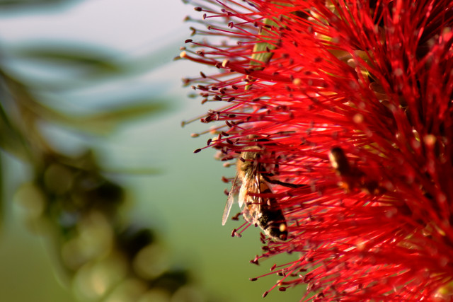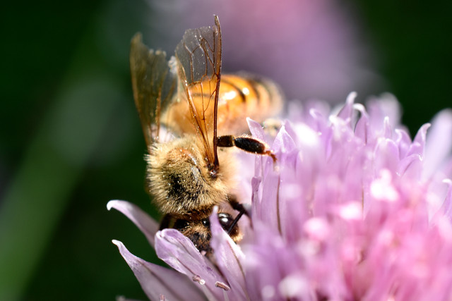 One of our bees is doing what they are made for, pollinating