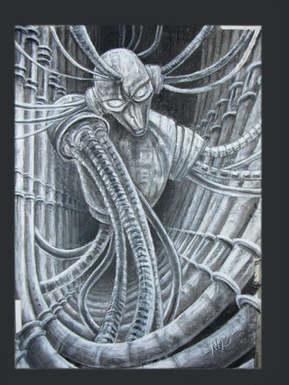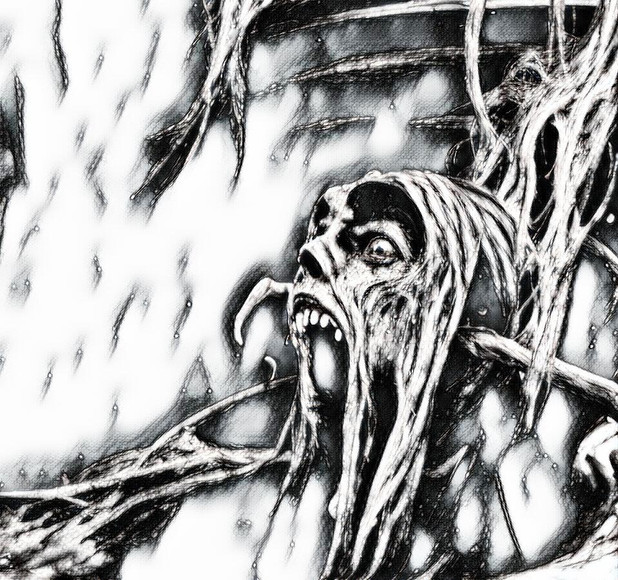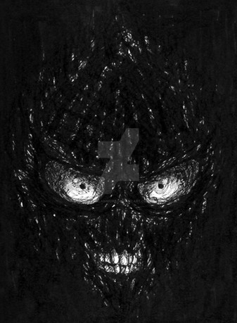 Angry face drawn on black paper with charcoal/ chalks.(Coverart -Ildjarn album)