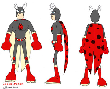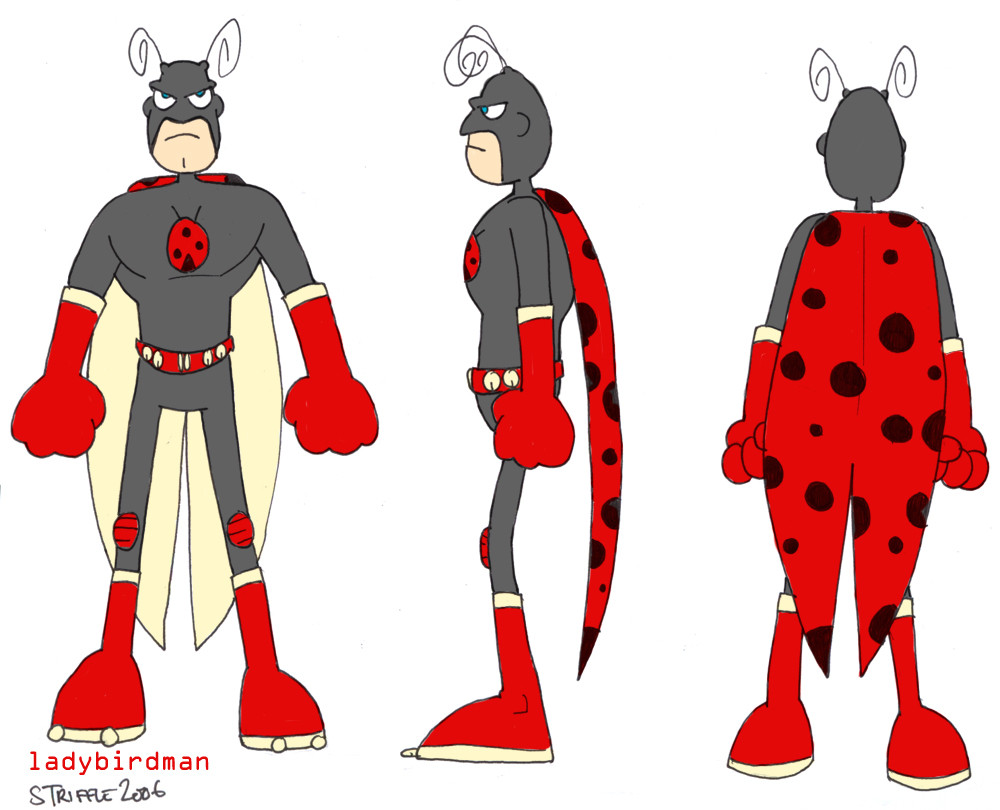 A turnaround of my superhero character, The Interminable Cockroach Man!