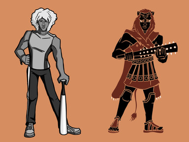 This model sheet is from the early planning stages of a future comic project based on the book series. The ancient form is drawn in the style of ancient Greek black figure pottery. Check out the books here: