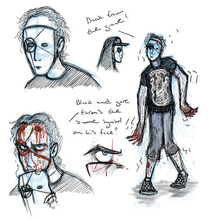 Well. I was sorta doodling... And it ended up being Tim (From Marble Hornets), so I did some reflecting and made it Tim and Masky.Tim/Masky Belong to Marble Hornets.