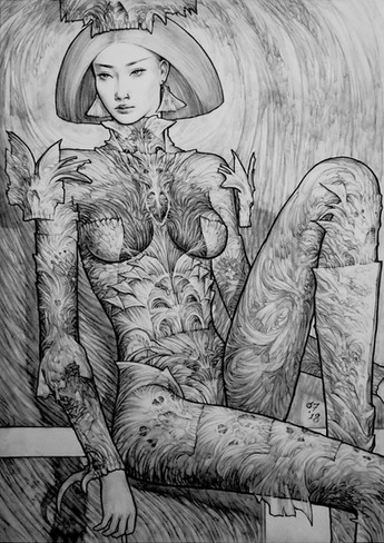 Anyway, I haven't really done anything with pencil for quite a few months and I thought I'd give it a crack again during the end of the holiday. There's two things that I like, and that's evil, epic looking armour, and hot looking Asians. Please excuse the fact that some places on here body are little out of proportion (e.g. her face being too long). I'm not that familiar with drawing women and I was constantly changing her pose throughout the process. I was thinking stuff like "Is her waist too thin? etc"