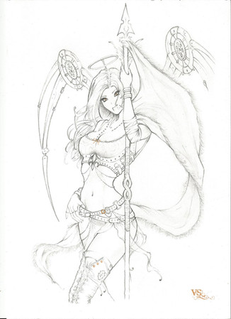 Is it me, or is the A3 scanner at the Roskill Shops' (the place I go to scan anything big because I only have an A4 scanner at home) getting real shitty? I already noticed from other recent scans that there's a lot and lot of dust and the resolution isn't as good as ones I got scanned last year of the year before... Gosh... makes the skin looks so damn rough...I was going to do this piece in colour on the computer, but after sitting on my butt playing Skyrim for about a month, I thought "Screw that ****", I'm doing it on paper.