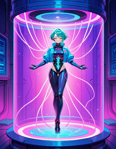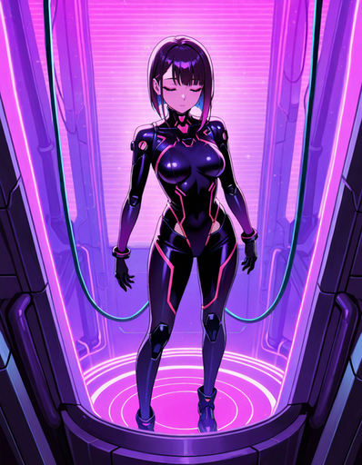 #anime #cyberpunk #digitalart #animegirl #scifi #androgynous #bodysuit #femboy #futuristic #glow #otokonoko #restrained #technology #transformation #didgitalart #scifiarmor #genderfluid #aiart #shinyoutfit
