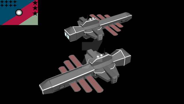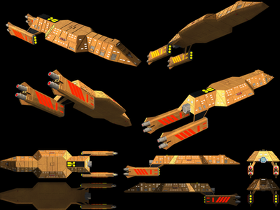The krogan ships use a lot of mini Thrusters for Maneuver. The cruiser have a big frontal Hangar, that can transport 2 Krogan Shuttle and 10 Krogan Fighter