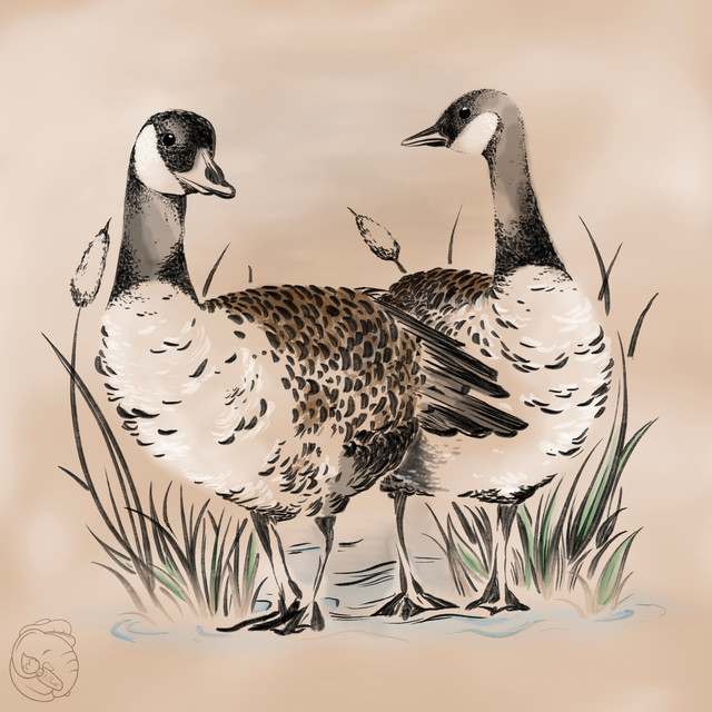 Little Ringed Plovers (Charadrius dubius) in mating behaviour. A not amazingly detailed painting I did last year for an International Wader Study Group annual conference's book of abstracts.These little guys are really really cute if you ever had a chance to watch them