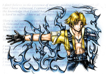 I did the line-art for this -ages- ago, and due to computer issues, a failing graphics card, and God knows what else, it's taken me months to get around to finish coloring it.However, the game's out at last (even if I haven't played it), and so I got the impetus once more to finish the damn thing. Yes, it's Rikku as a boy. Not...like it's obvious or anything. I mean, he's /flouncing/.