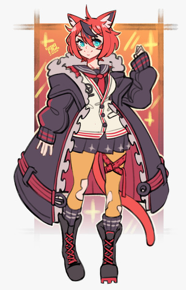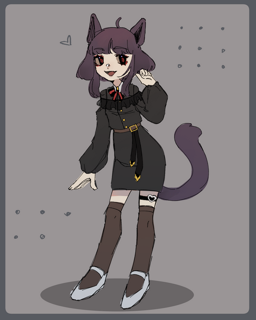 #girl #oc #kemonomimi #blackhairedgirl #catgirl #cutekawaii #fullbody #originalcharacter #redeyes #simplebackground #myartwork #shorthairgirl #kemonomimigirl