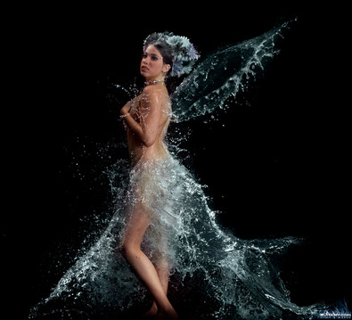 O.O Awesome, I love these fast shutter water pics! The sparkle and glow of the water droplets and the smooth but wild flow of the larger chunks of water. The texture and refractions on the more rigid sheets near the top of the pic and the way the water seems to fuse, freeze, splash, ripple, and blur where it makes contact with your skin 0.0 I also love the way your hair shapes itself in long spikes shooting water out of the tips, and curved just before the end so it looks... "naturally mystical" is the best way I can find to describe it.