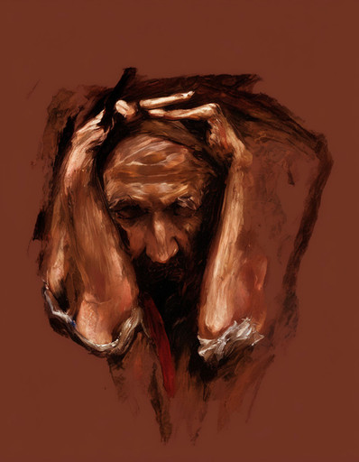 I find it difficult enough to create shape and emotion when painting from life, but here, not only have you conveyed feeling and form, you have distorted reality so simply, adding strength to the messages within. Truly an amazing image, minimal detail with maximum effect... I envy your talent. Great work.