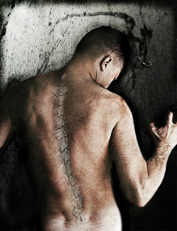 this is really well done. the coloring reminds me of fight club. the pose reminds me red dragon. the lighting and the cracking is so interesting.