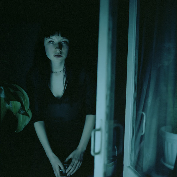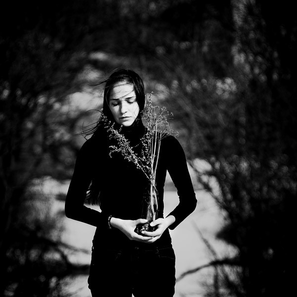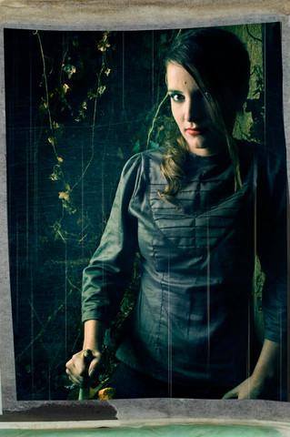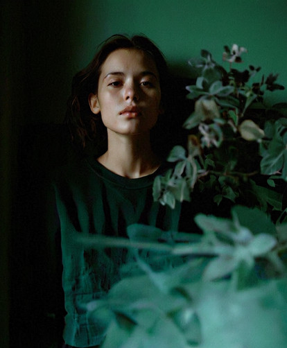 She looks like she's just seen the woman in black, as if shes about to drop the leaf