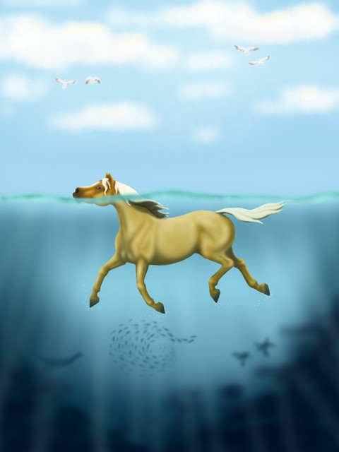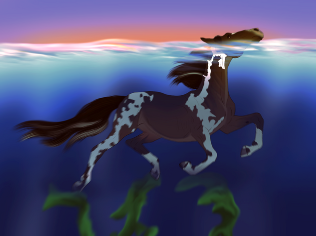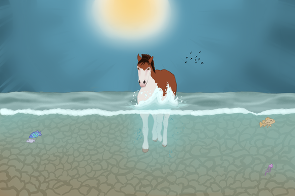 this is sooo beautiful i love how you drew the sea and the horse is just amazing