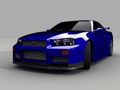 Well, this is the model that the stock skyline will turn into in the animation. I am very happy with the design, mostly just made up in my, head with inspiration from nfsu.I have been playing around lots with materials and lighting, and am especially happy with the carbon fibre bonnet and the headlights.