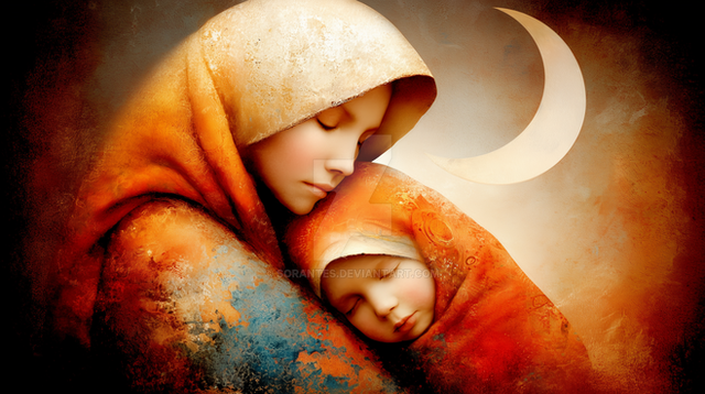 Le regard de la jeune femme, puis les couleurs, très douces, contribuent à rendre cette atmosphère très maternelle et reposante.