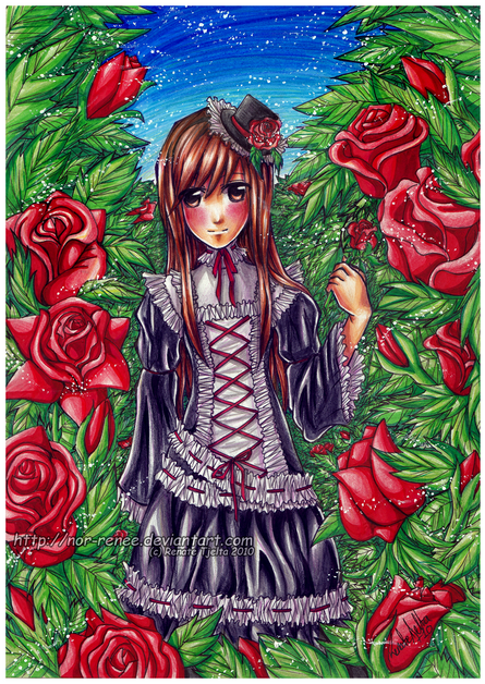 #crayons #girl #manga #markers #praying #roses