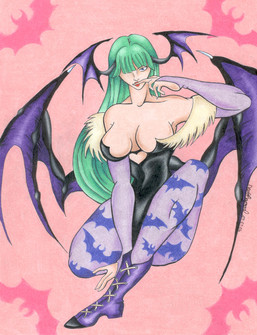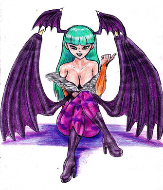 Umm HI~ hehe this is my first submission, my friend =Goldhedgehog introduced me to this website so yea^^.Well this picture of morrigan is pretty random, i wanted to try sumthing in color so i did... I know is not the best, but for real this would be like the first thing i've ever done in color pencils for Aggggggggesssss.(i do mean agggggggeeeessssss!) I actually went to buy some color pencils and ink pens on saturday, because i felt that i should start practising coloring in lol lol... I promise every next colored pictures i submit will be better than the next so u just wait ^^ so yea hope u guys like it ^^