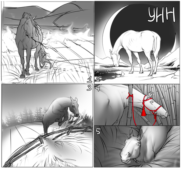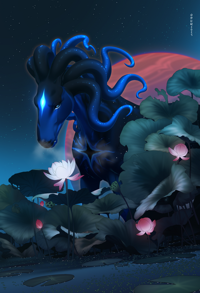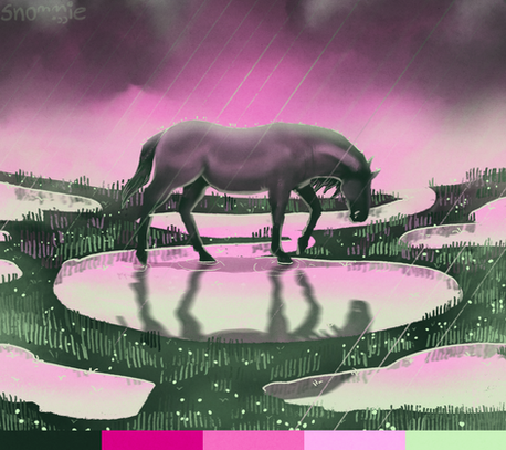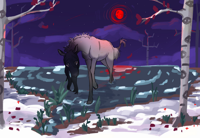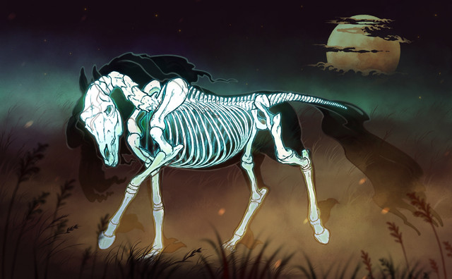 #horse #background #commission #equine #equineart #horseart #illustration #lake #male #pony #skeleton #skull #stallion #water #ych #attu #ghattyattu #commissionopenferal