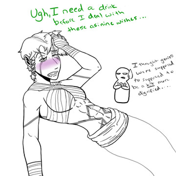I was trained in the ancient, honorable art of the Drunken Fist. I move better on my feet. This is a stupid thing." *waves smokey-tail around in disgust*