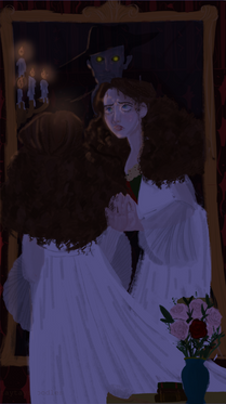 And now I have to check out those books, as well! I can't tell you how much I adore this piece; the emotion, the lighting, how well you conveyed a two dimensional piece of art behind him, *his hands* - there's so much rage and despair there without a facial expression, and it's perfect. Utterly beautiful.