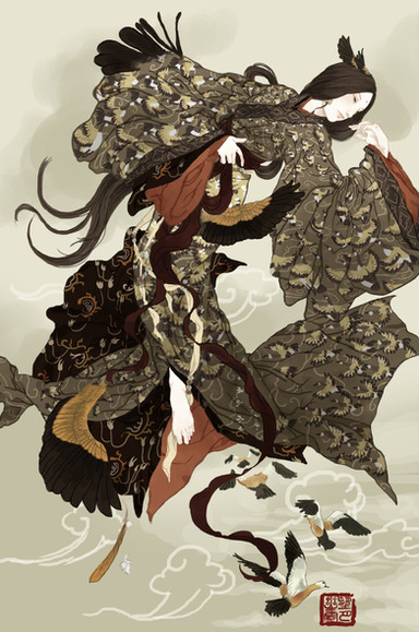 i love your pieces that are inspired by traditional asian artwork^^