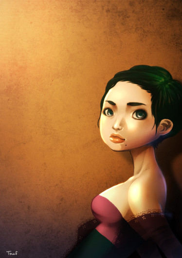 I love the coloring style in this one! The perfect balance of realism and that not-quite-blended cartoony look on her skin. The rest of the textures are amazing as well.