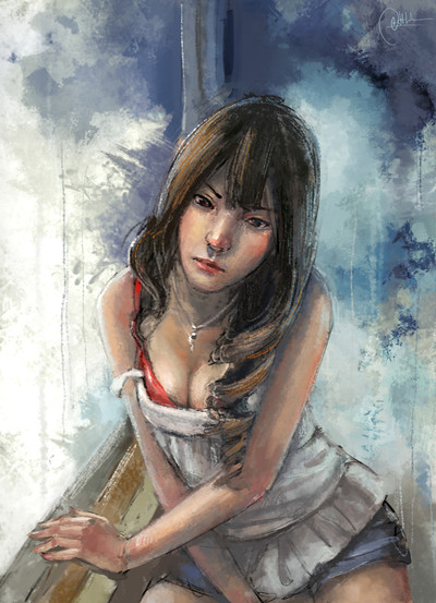 the way you drew her is fantastic, the texture of her skin and the jeans look fantastic.